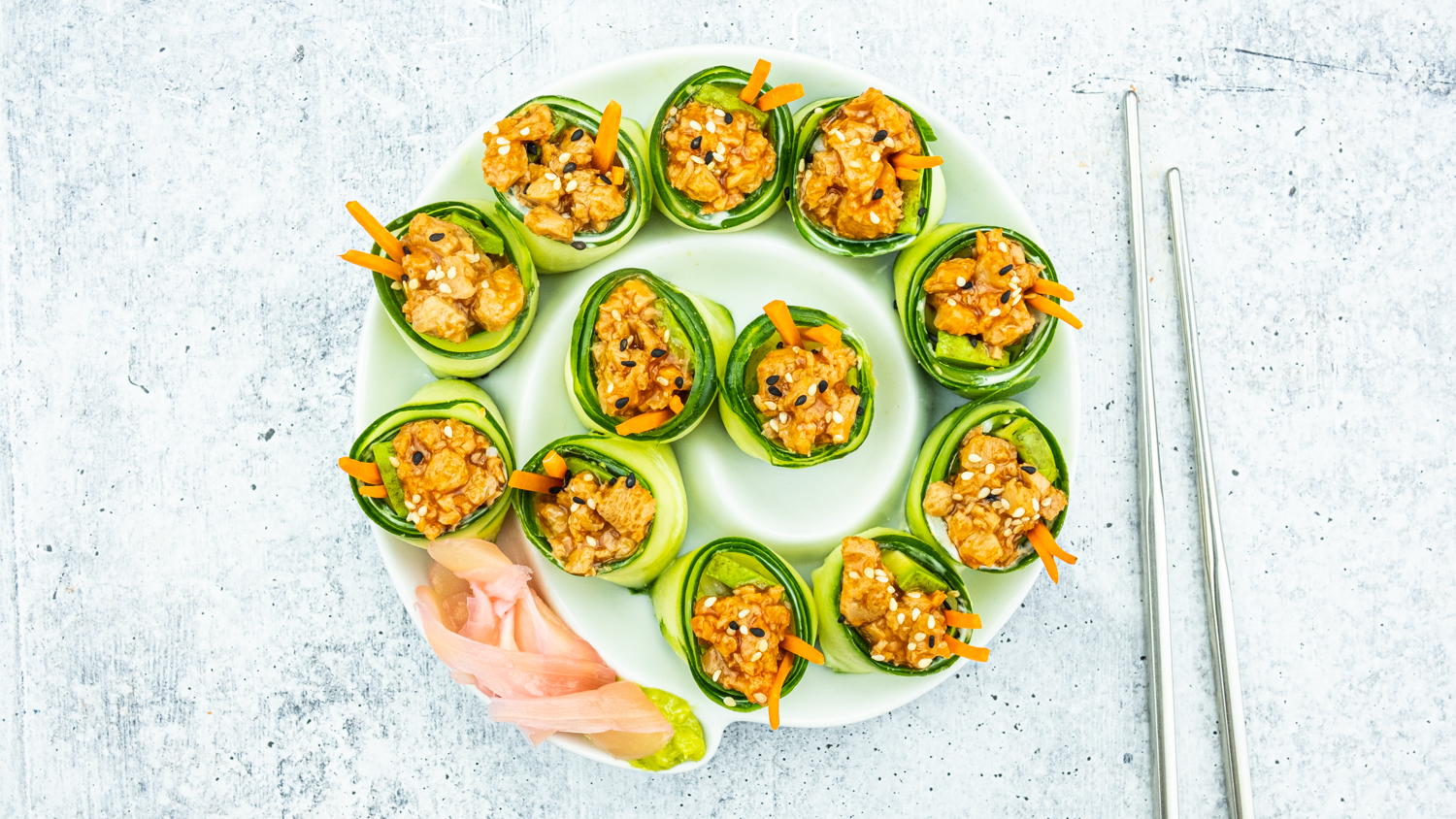 Reinvent traditional sushi rolls in this vegan recipe featuring Modern Menu TUNO™ Spring water. Swap nori sheets for cool and refreshing cucumber strips to create a unique, attractive, and cost-effective appetizer.